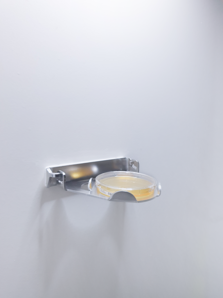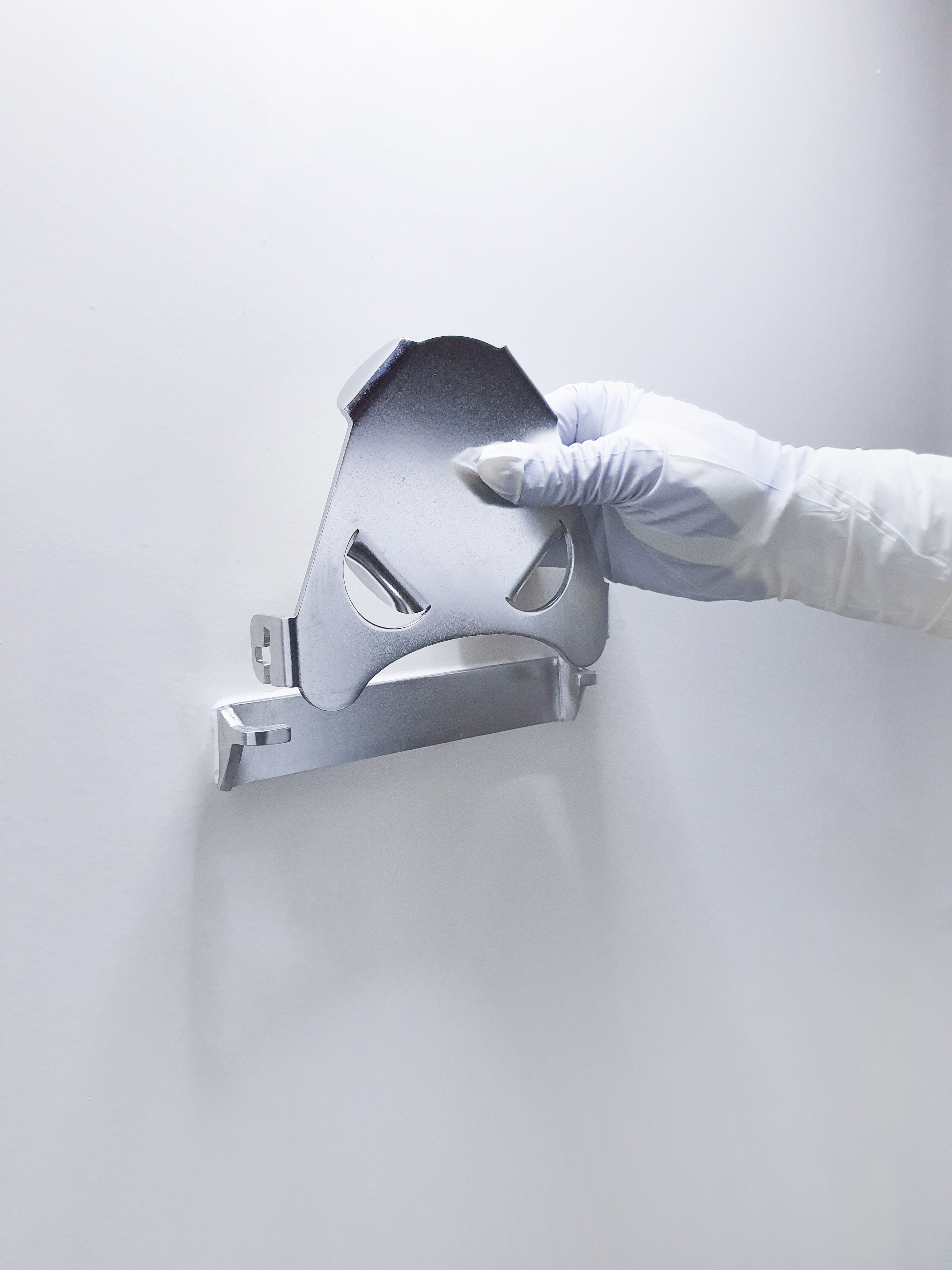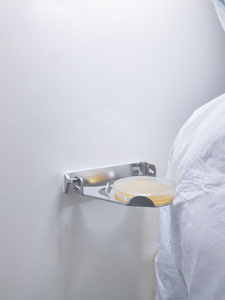 Keep your floors clean – use our shockproofed wall-mountable settle plate holder – with FDA compliant surface – Ra <= 0,4 µm – 219,00 EUR net